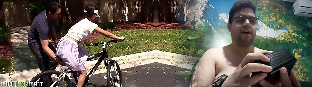 He teaches her to ride a bike then to rail his fat cock