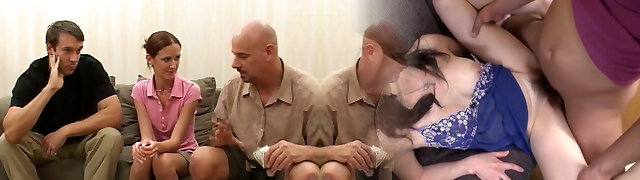 Titless ordinary looking dark haired agrees to fuck with pals for some cash