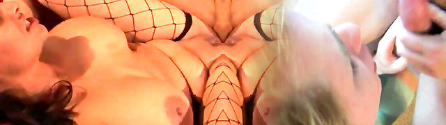 Huge titted brunette has lesbian fuckfest with pale redhead
