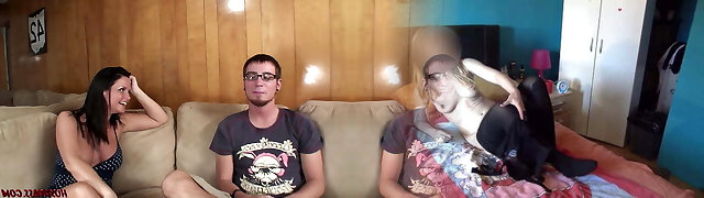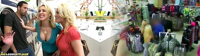 Blondes with Big Jugs Enjoy A Hot CFNM 4some At The Laundry