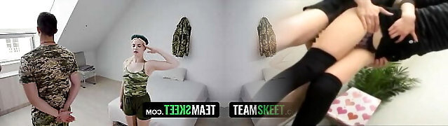 Tiny Light-haired Soldier Lika Star Practices Following Any Order Of Horny Sergeant In Army Boot Camp
