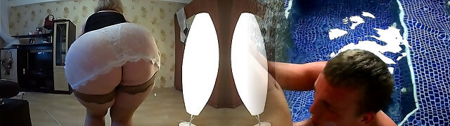 Chubby Wife with a big ass and Spouse in tiny Bikini Swimsuit - Couple Foreplay