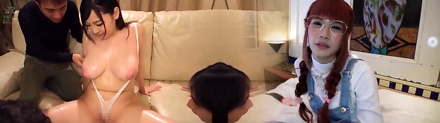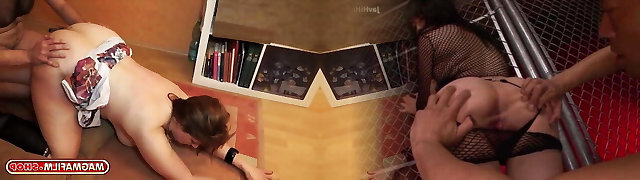 Chubby Bbw Japanese stunners team up on one cock for a triple titjob