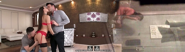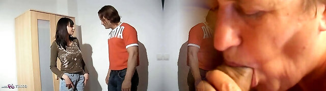 Lucky dude gets to fuck his wife and their young baby sitter in the living apartment