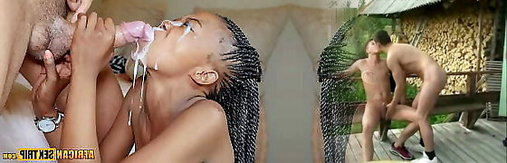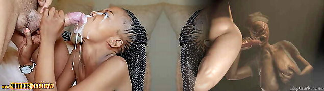 Natural Ebony African MILF Facial in Interracial Job Interview