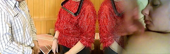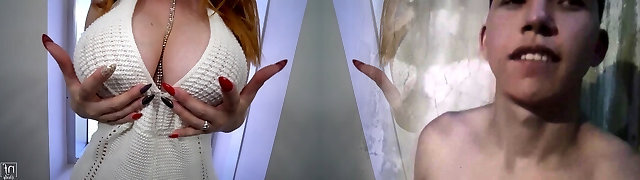 Pretty Cougar With Fake Melons Giving Her Horny Guy Blowjob