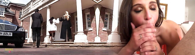 Busty Carmella Bing fellating massive cock and getting hammer with a cute blonde milf at a marvelous palace