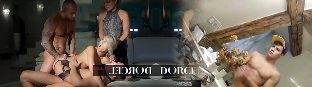 Nikki Sexxx huge-boobed blonde have group sex on couch
