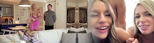 Cheating husband looks on as hot wife gets pounded with a fat cock