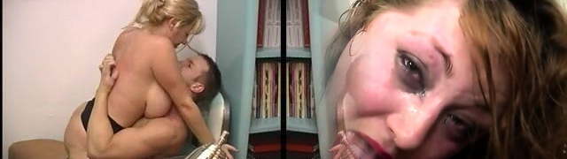 Mature light-haired with humungous breasts screwed by student in the classroom