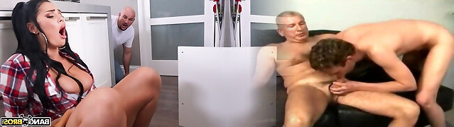 TUTOR4K. Stud porks professor’s cave while stepson sits next to them