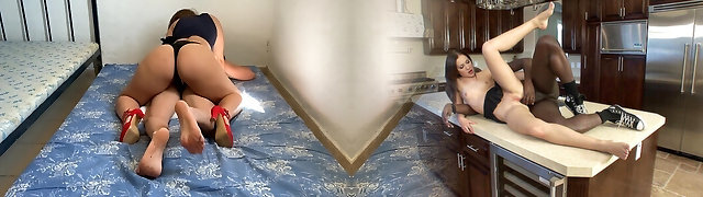Big ass stepsister shares her bed with stepbrother and pounds her firm