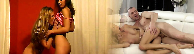Seductive Rachel Love in a three-way with two stunning sluts