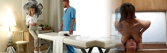 Tight Arse Brunette Drains Lucky Massage Therapists Big Cock