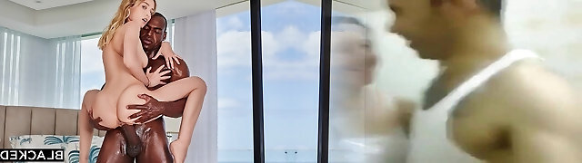 Towheaded gives a massage to big black jock before passionate intercourse