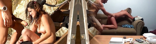Lots of couples watch the way brunette in corset is boinked doggy hard
