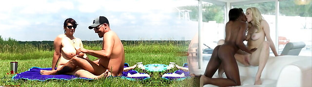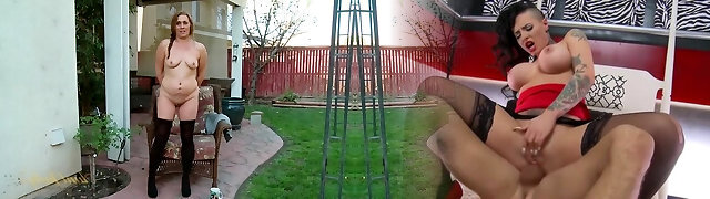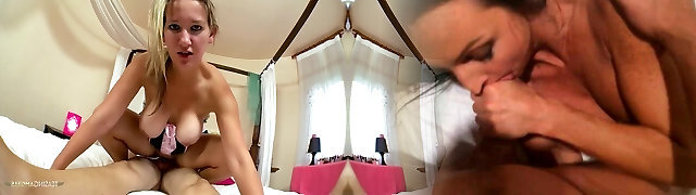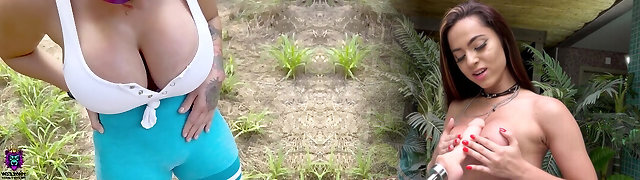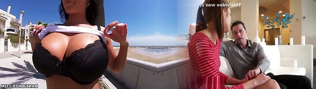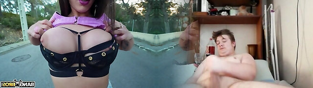 Brunette With Bulgy Gigantic Tits Strokes A Cock.