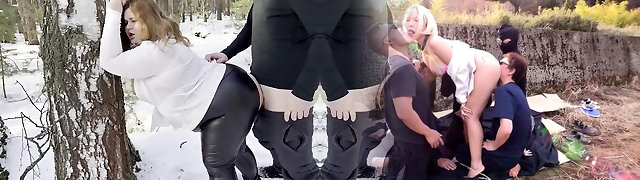 Outdoor group banging with naughty Bianca Ferrero & Mia Melone