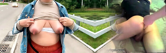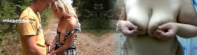 Busty nymph showing off her obese ass to seduce boyfriend for a risky fuck-fest in a public park