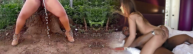 Pissing gangbang with buxom ebony babe Coffee Brown