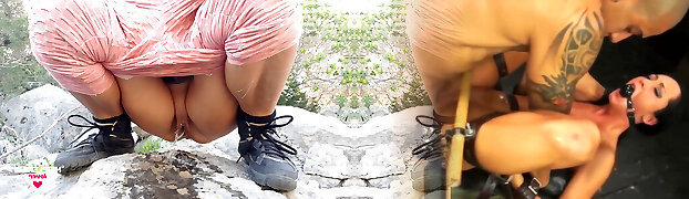 nippleringlover peeing outdoors in nature - pierced clit & pierced nipples with fat nipple rings