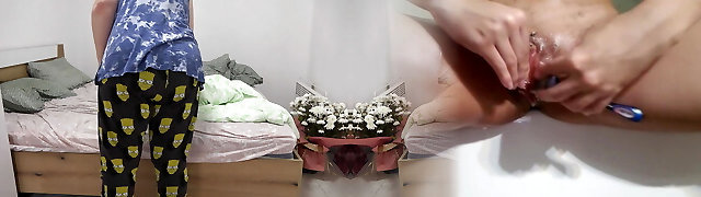 perverted stepmother shows insecure stepson how she pisses from her hairy vulva