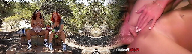 Two nice gals eating in the park, littering and peeing in front of everyone
