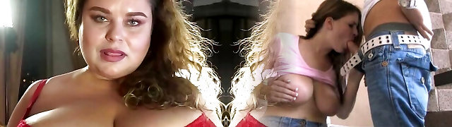 Sensual blowjob from an 18-year-aged teen with big tits