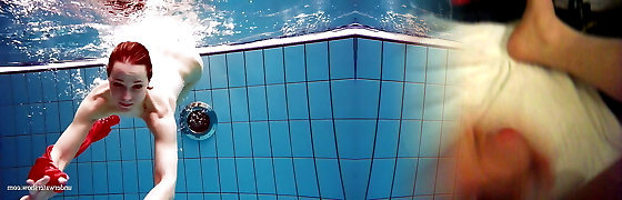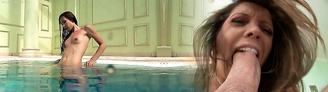 Russian sapphic girls swimming in the pool