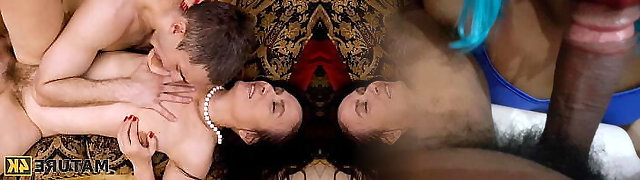 MATURE4K. Guy finds stepmother masturbating and goes scoring hairy cunny