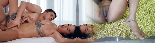 Romantic russian black-haired girlfriend Ariadna in extreme sex