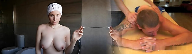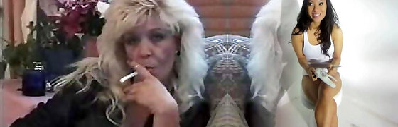 Round Mature Blonde Secretly Smoking in the douche and ashes on her big tits and pink pussy