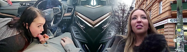 Cougar with Big Boobs Sucks a Dick and Plumbs at the Bus Stop