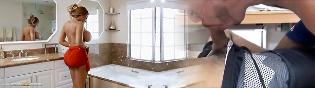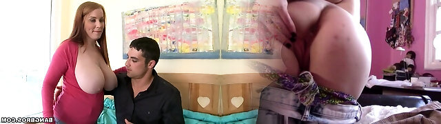 Big-breasted woman is doing everything with her funbags