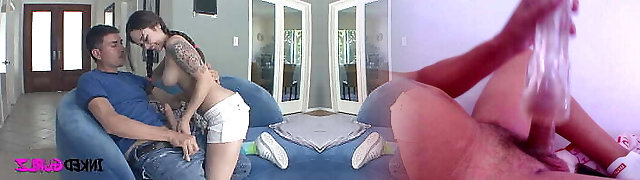 (POV) Young Big Tits Babe And Tattoo Female Sharing Big Fuckpole Hottest Threesome - WHORNYFILMS.COM