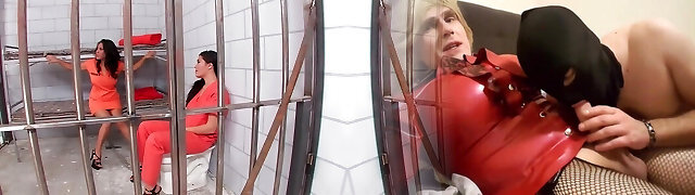 The milf dark-haired gets arrested and haul into a threesome by a ash-blonde female officer and her colleauge