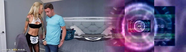 Tattooed big breasted blonde maid has fun riding strong sloppy manmeat