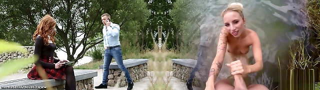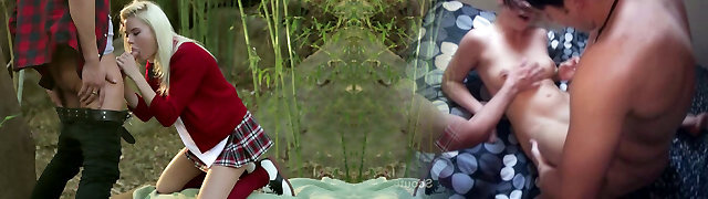 Blond spoiled woman Chloe Foster pleases her BF with solid BJ in the forest