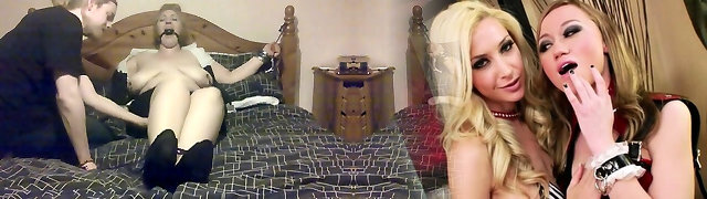 A couple of big-titted blonde heads including Nikki Peach are fucked on the table