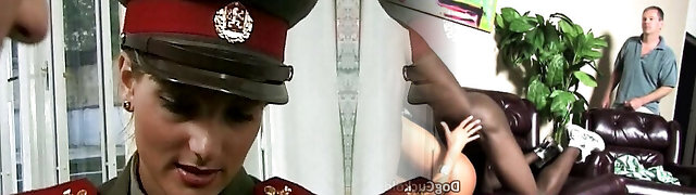 German policewoman pleasing a rigid and loaded cock