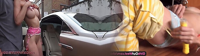 Young stupid Evilyn Jezebel with humungous fake tits masturbates outside and sucks my cock in the car - WhornyFilms.com