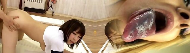 疯狂的日本学校的女孩得到她的广泛开放的阴唇捣硬