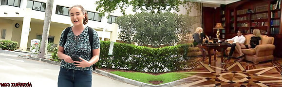 适合青少年与大弹跳的胸部海莉卡明斯通过巨大的鸡鸡