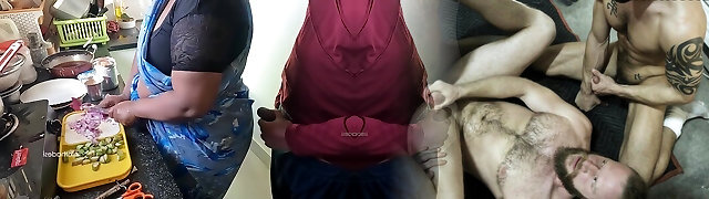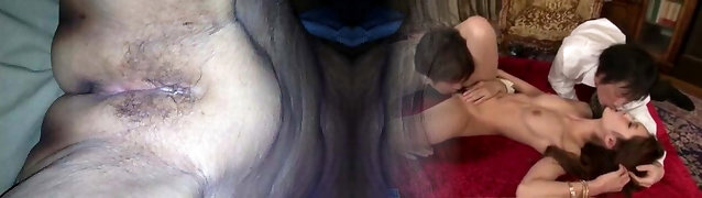 母亲在法律持有她的奶子,而儿子在法律乱搞她的狗爬式