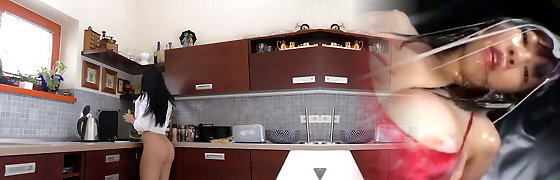 保姆试图洗碗,但最终吞下了一个大射液!娇小的青少年菲奥娜白兰地被搞砸了