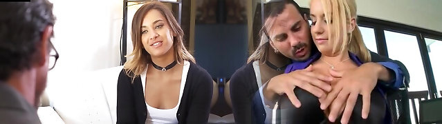 巨大的山雀Phat战利品Supah炎热的金发美洲狮邀请瘦小的小Hooters保姆进入一个三种方式与超级淘气和超淫的做爱