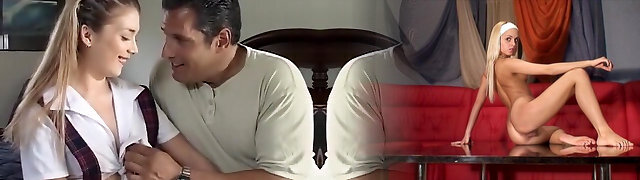 超级可爱的金发少女穿透厚厚的硬上,而她的父母是一天