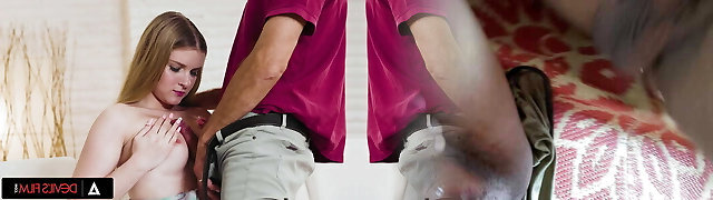淘气的金发保姆被抓到吸烟,所以她必须他妈的她的老板的惩罚