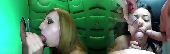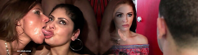 大胸脯的英国妈妈Barby Hoe和Katie双种族帮派-bang bukkake派对