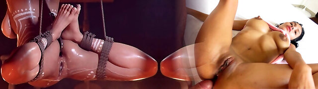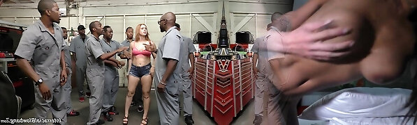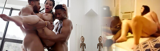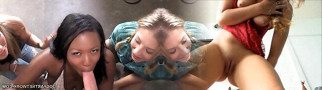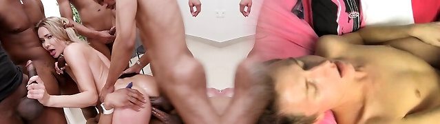 她被几个黑色的阴茎包围着,当它们同时穿透她所有的洞时,她高兴地尖叫着